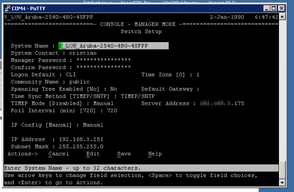 Lo primero, antes de nada, entramos al menu mediante el comando menu y modifcamos aquello que nos interese (hostname, contacto, passwords, NTP, IP… )