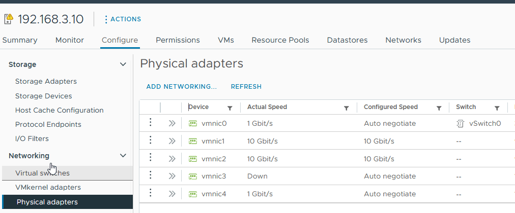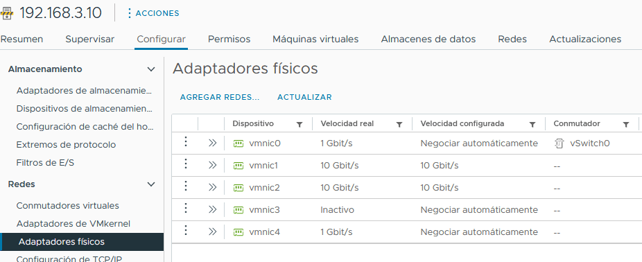 - vmnic1 y vmnic2 (1 es suficiente, aunque de nuevo, se recomiendan 2).