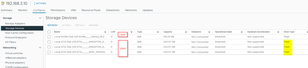En mi escenario de pruebas, tenemos un total de 4 discos flash por cada nodo: