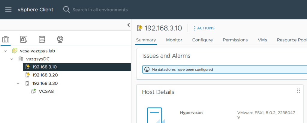 Partimos de la base de que si estás leyendo hasta este punto es porque sabes de sobra que es un ESXi y como se instala. Has levantado previamente clústeres VMware (sin vSAN) y te manejas bien con el entorno vSphere. Por lo tanto, contamos con: