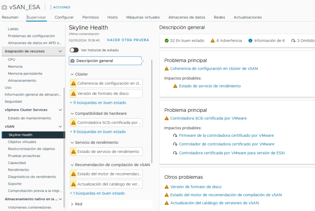 En mi escenario tengo bastantes warnings ya que se trata de un escenario de pruebas en mi homelab, no es algo preocupante.