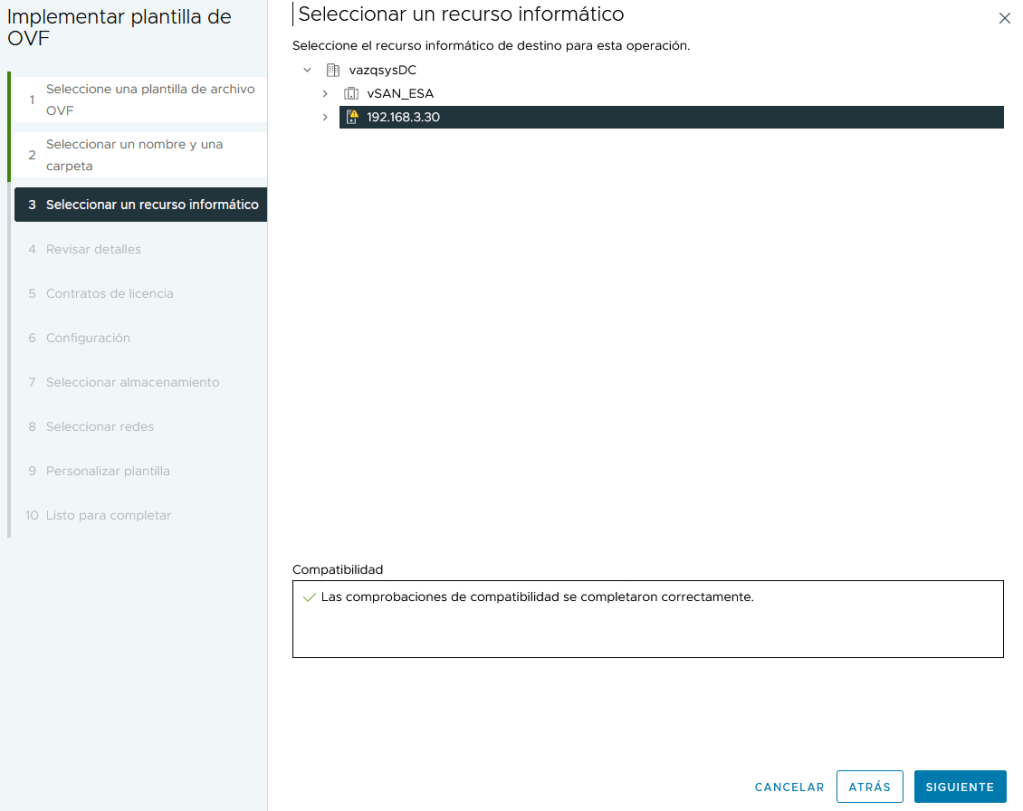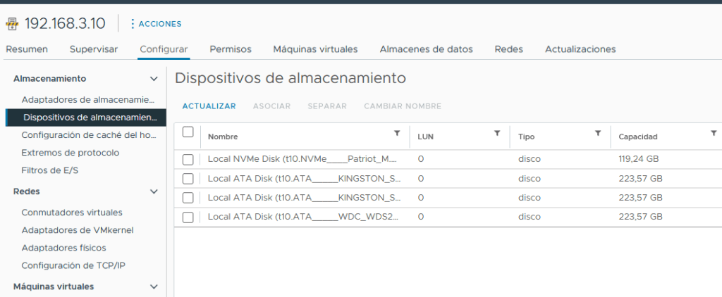 - Importante: VMware indica que los discos son incompatibles pero esto solo indica que el disco no ha sido aprobado por VMware. No está certificado y por tanto VMware no garantiza un rendimiento óptimo. El disco es compatible y se puede seleccionar.