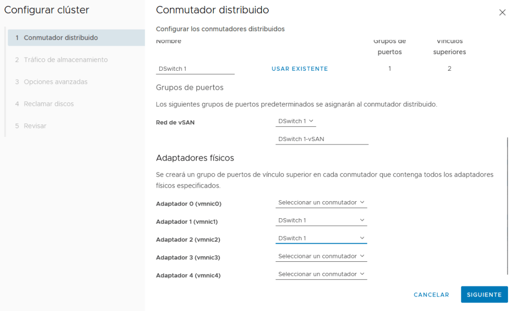 - Uso la conexión directa a 10G para crear un switch virtual distribuido.