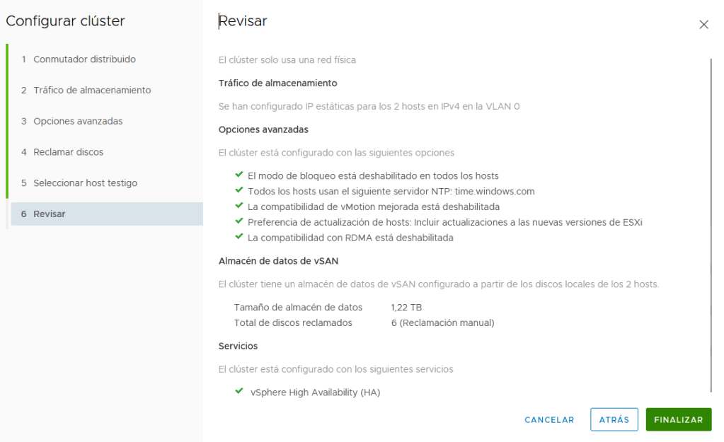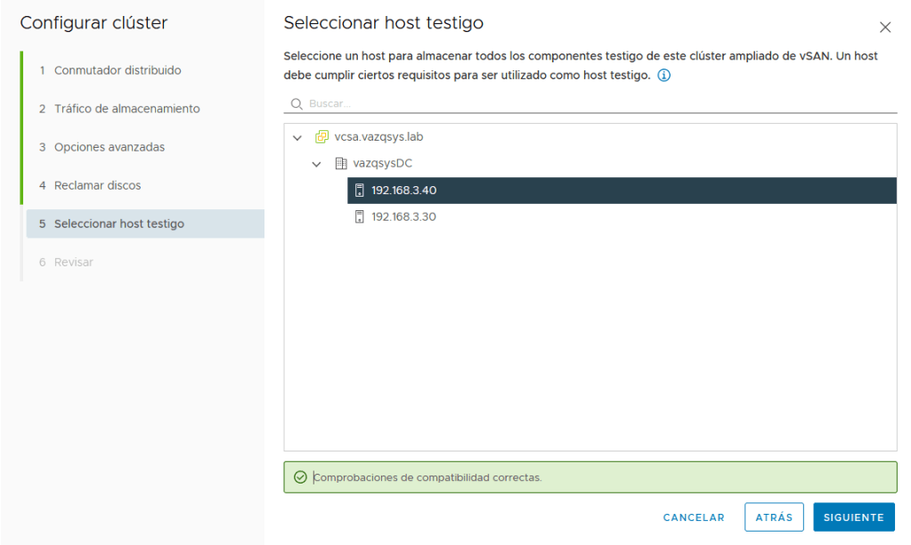 - Selecciono vSAN de dos nodos (al final mostraré el resultado, crea un clúster ampliado!)